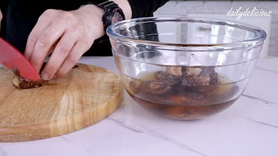 But this one is a lot easier version, both in the method and the ingredient. As the main flavor for this dish is a dried shiitake, besides mixing it into the rice, we also use the water that we get from soaking it to cook the rice too.