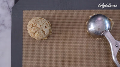 Use a 5.5 cm scoop to scoop the cookie dough onto the prepared baking sheets. You will get about 17-18 pieces.